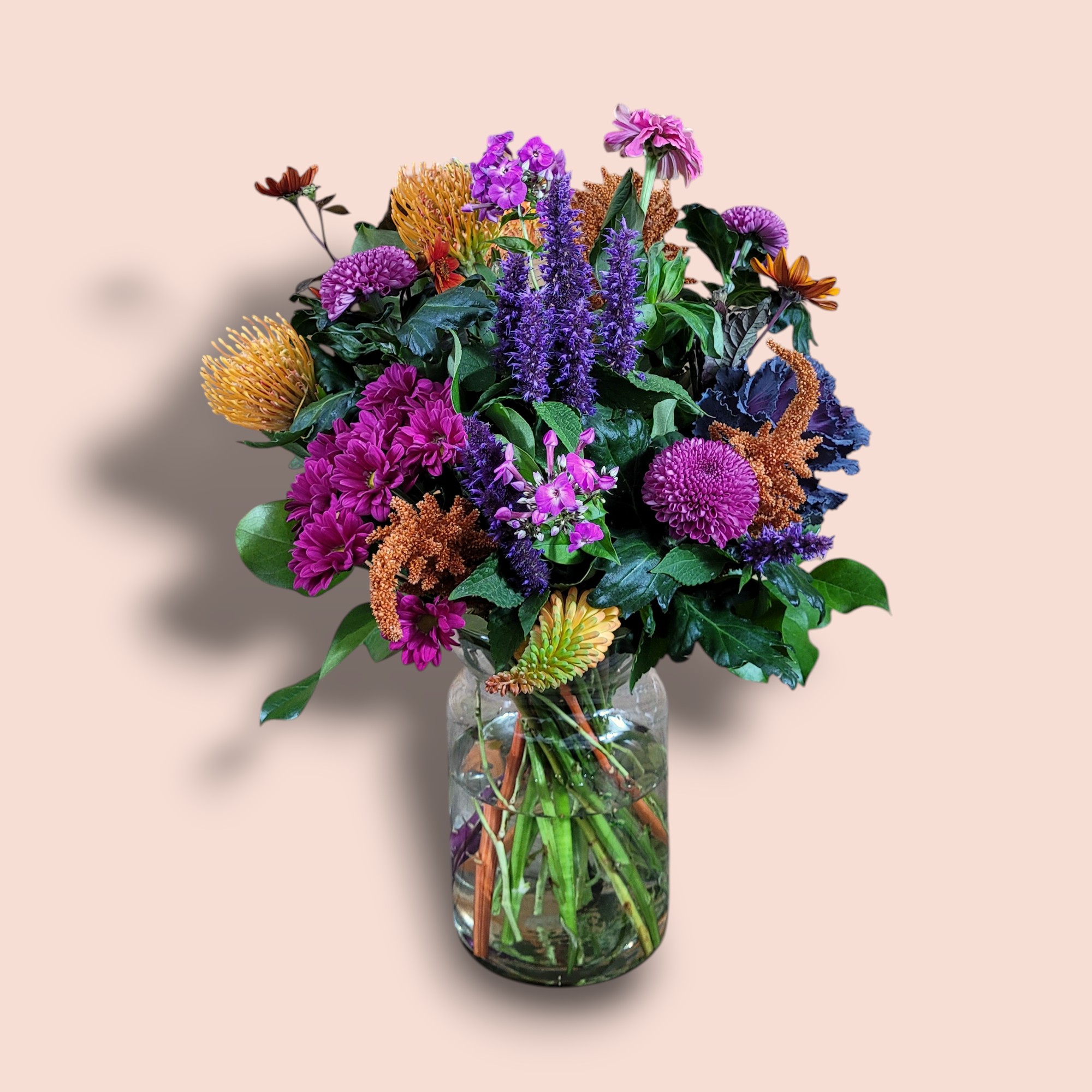 Dit boeket wordt standaard zonder vaas geleverd, maar kan wel worden bijbesteld.